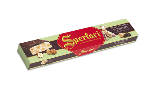 Soft Cremona nougat with hazelnuts, covered with dark chocolate. The dark chocolate conceals crunchy hazelnuts, soft honey and lemony notes. The initial flavour is dark chocolate and intense lemon, before giving way to smooth honey and the unmistakeable flavour of hazelnuts. The pleasant, bitter flavour of dark chocolate lingers in the mouth.